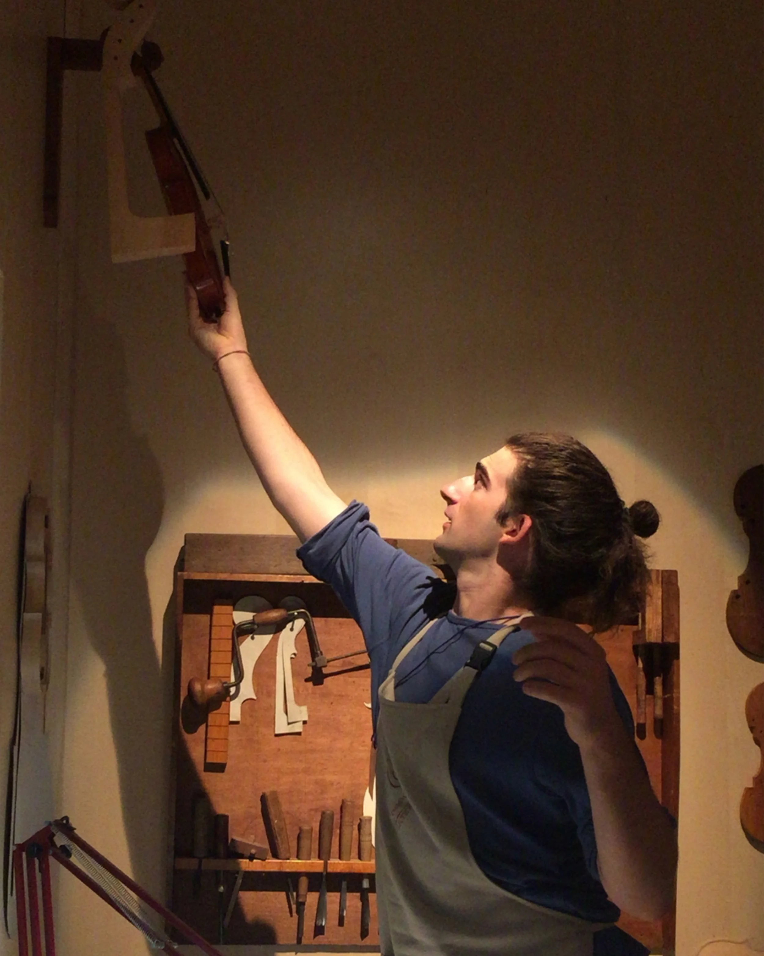 During his school years, he focused on instrument making, developing an interest in Baroque instruments and also building some plucked instruments. After graduating in 2019, he worked for a period in several workshops in Cremona before dedicating himself to building his own instruments in a shared workshop with former classmates, where he also had the opportunity to experiment and deepen his knowledge of various aspects of varnishing.